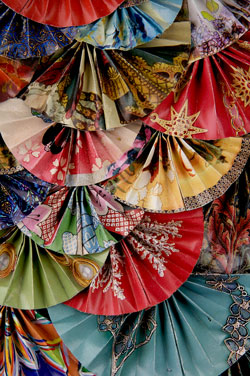 (catalogues, solicitations, newspaper ads) were folded into fans and sewn onto a