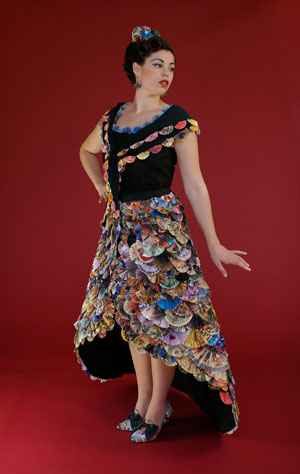 skirt and dress made of scrap canvas and a mantilla for the hair. The vintage