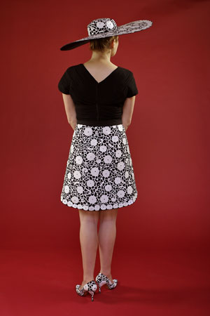 vintage shoes, a skirt and hat made from canvas scraps. The dress is a